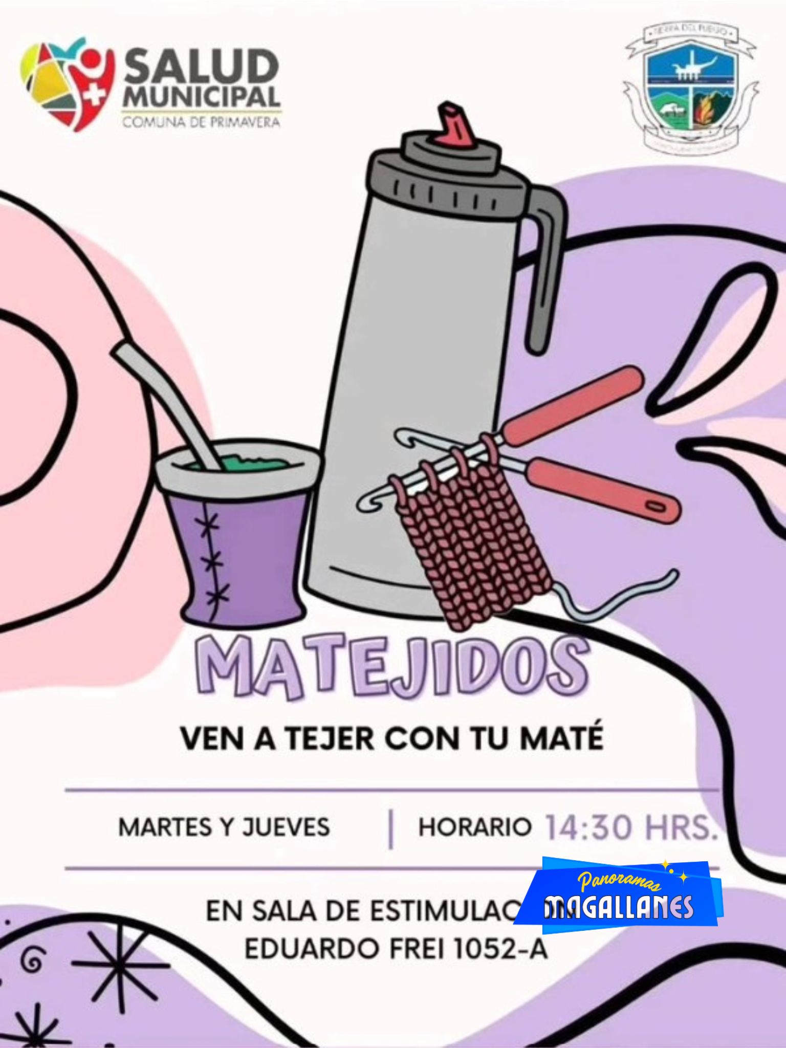 La Ilustre Municipalidad de Primavera, a través del Programa de Salud Comunal y la Unidad de Salud, invita a la comunidad a participar del Taller Matéjidos, un espacio de encuentro, aprendizaje y conversación en torno al tejido y el maté.